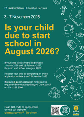 The online enrolment application can be found here https://www.glasgow.gov.uk/P1Enrolment.